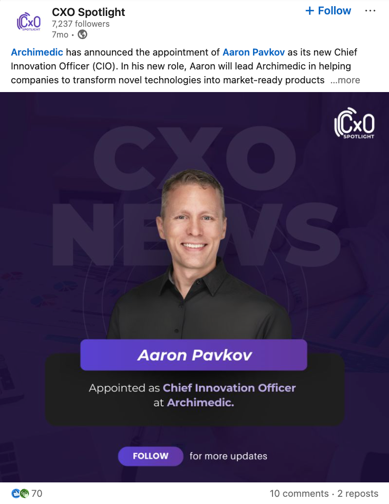 Pavkov brings product development experience that spans concept creation through commercial launch across physical and digital products. Before joining Archimedic, he served as Director of Product at Medical Guardian. Earlier in his career, he held leadership roles at Bresslergroup, now Delve, and at 4moms, where he helped bring award-winning consumer and healthcare-related products to market.