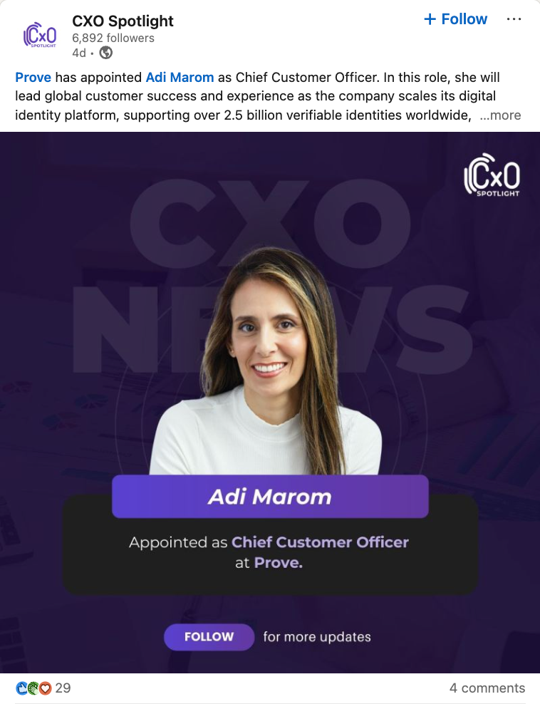 Prove has appointed Adi Marom as Chief Customer Officer. In this role, she will lead global customer success and experience as the company scales its digital identity platform, which supports more than 2.5 billion verifiable identities worldwide. The appointment was announced on March 17, 2026, as Prove continues expanding adoption of its identity infrastructure across a growing enterprise customer base.