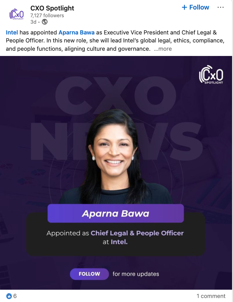 Intel has appointed Aparna Bawa as Executive Vice President and Chief Legal & People Officer. In this role, she will lead Intel’s global legal, ethics, compliance, and people functions, aligning culture and governance as the company continues its transformation. The appointment gives Bawa responsibility for strengthening Intel’s legal and compliance foundation while advancing its people strategy and leadership culture.
