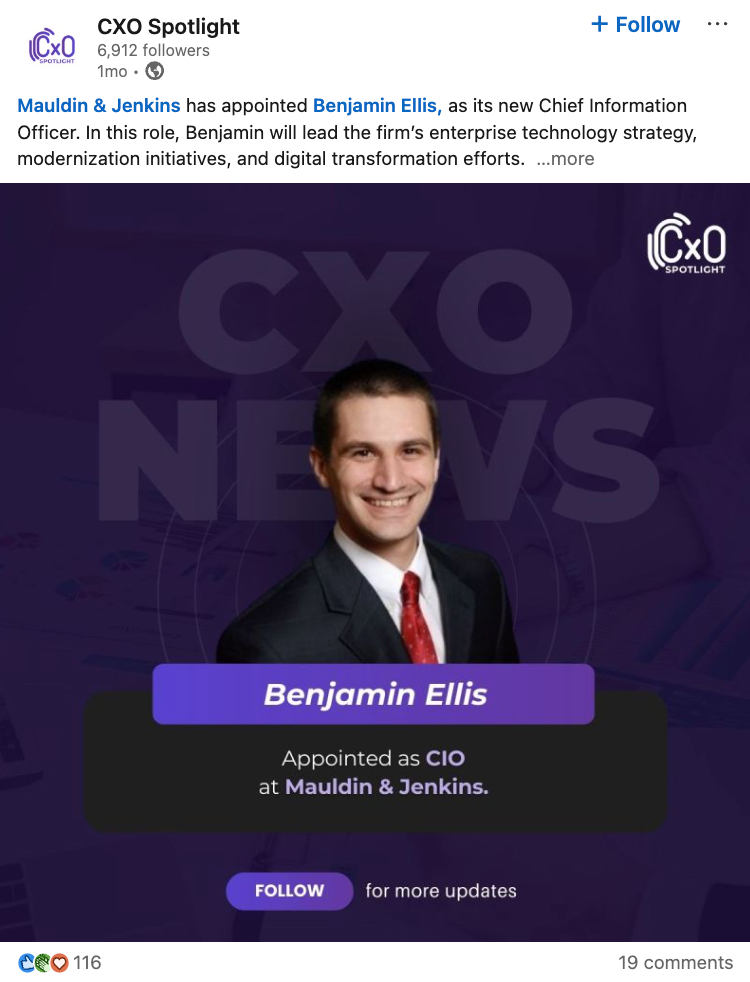 Why this matters: For large accounting and advisory firms, technology leadership is increasingly tied to delivery quality, client experience, cybersecurity, and scalable growth, not just internal infrastructure. Bringing in a CIO with experience across modernization and post-merger IT integration suggests Mauldin & Jenkins is positioning technology as a more central lever in how it grows and competes.