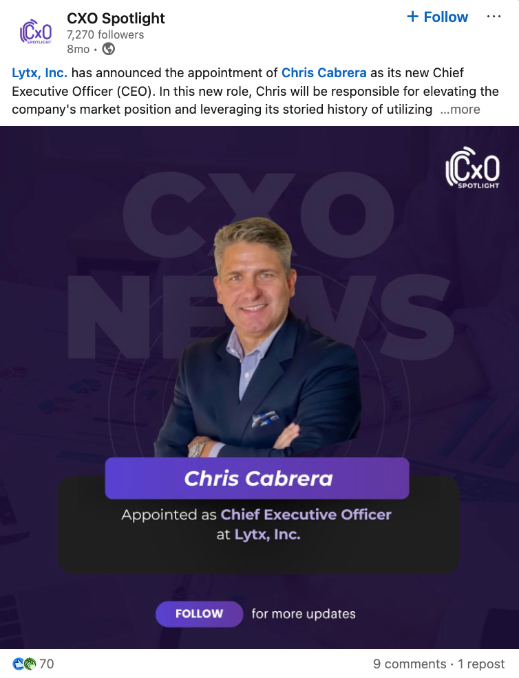 Lytx, Inc. has announced the appointment of Chris Cabrera as its new Chief Executive Officer. In this role, he will be responsible for elevating the company’s market position and building on its long history of using technology to serve its customers and industry. The appointment places Cabrera at the center of Lytx’s next phase of strategic and operational leadership.