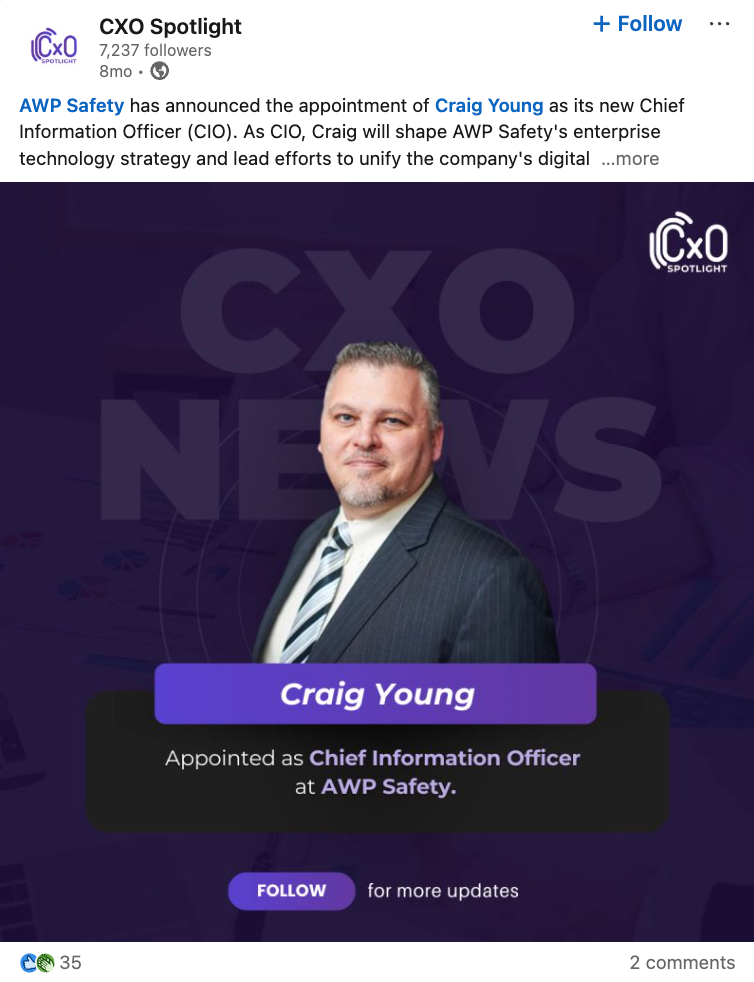 AWP Safety has appointed Craig Young as Chief Information Officer. In this role, he will shape the company’s enterprise technology strategy and lead efforts to unify its digital capabilities as it advances its modernization agenda. The appointment puts Young at the center of AWP Safety’s push to strengthen technology infrastructure, improve operational responsiveness, and support customer innovation across its safety services platform.
