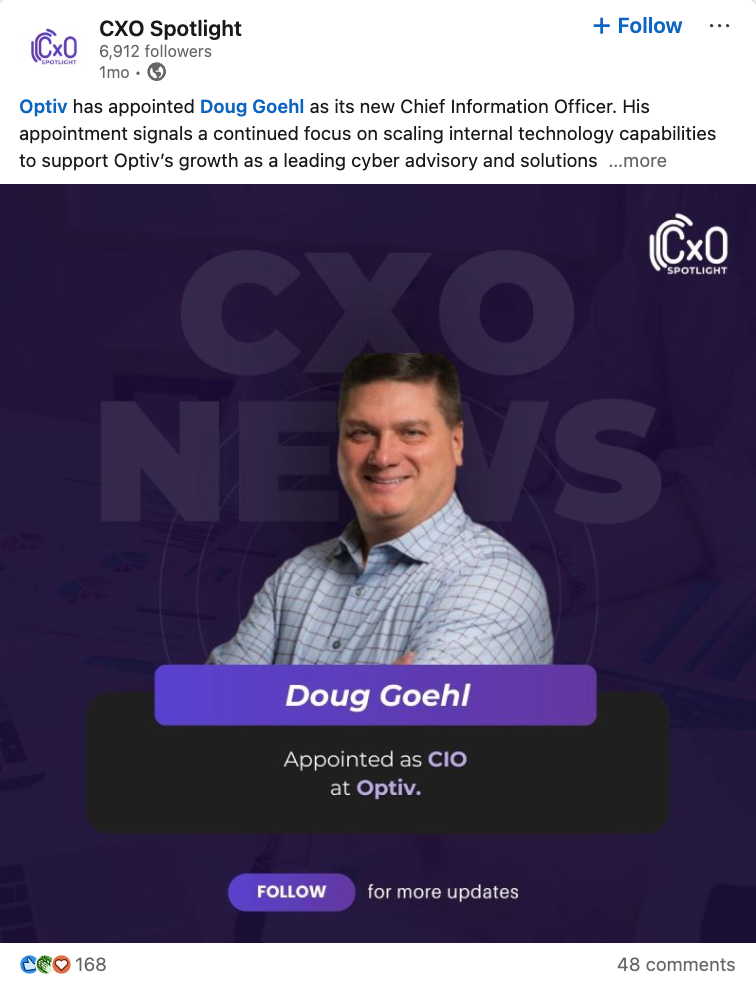 Optiv has appointed Doug Goehl as Chief Information Officer. In this role, he will lead the company’s internal technology strategy and help scale enterprise capabilities that support Optiv’s continued growth as a cyber advisory and solutions provider. The appointment signals a continued focus on strengthening the operational technology backbone behind the company’s expanding business.
