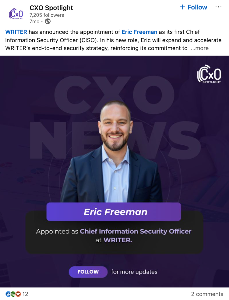 WRITER has announced the appointment of Eric Freeman as its first Chief Information Security Officer. In his new role, Freeman will expand and accelerate WRITER’s end-to-end security strategy, reinforcing the company’s commitment to secure, enterprise-grade AI. The appointment adds a dedicated security leader as WRITER scales its platform for larger enterprise deployments and more security-sensitive use cases.