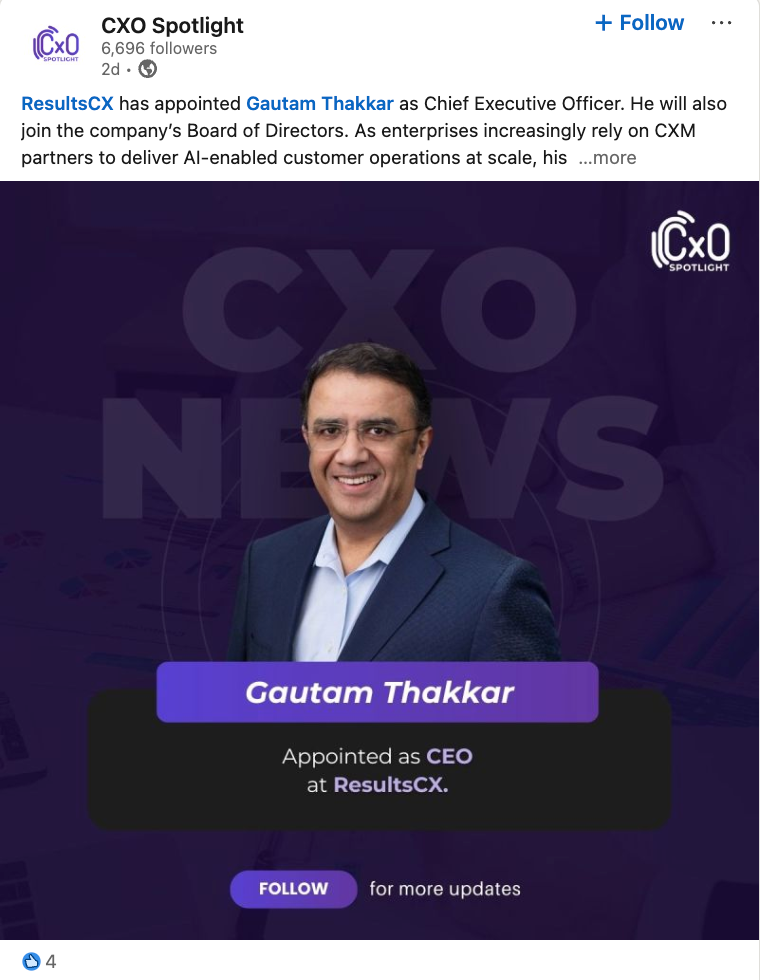 ResultsCX has appointed Gautam Thakkar as Chief Executive Officer, and he will also join the company’s Board of Directors. He takes on the role as enterprises increasingly rely on customer experience management partners to deliver AI-enabled customer operations at scale. The company said his mandate comes at a time when AI and automation are reshaping how customer engagement is designed and delivered.