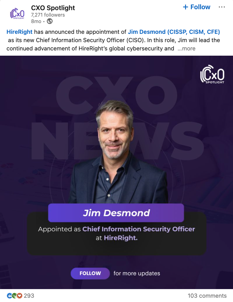 HireRight has appointed Jim Desmond as its new Chief Information Security Officer. In this role, he will lead the continued advancement of the company’s global cybersecurity and information security strategy. The appointment gives Desmond responsibility for strengthening HireRight’s security posture as the company continues to operate in a data-sensitive, compliance-driven environment.