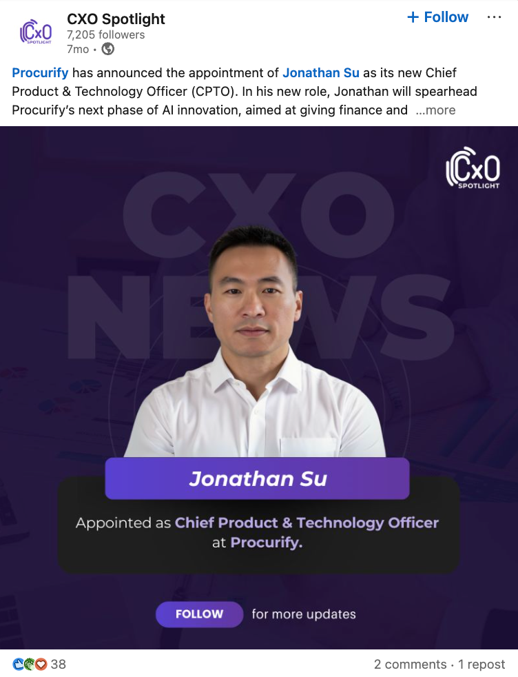 Procurify has announced the appointment of Jonathan Su as its new Chief Product & Technology Officer. In his new role, Jonathan will spearhead Procurify’s next phase of AI innovation, aimed at giving finance and procurement teams faster, deeper insights and greater control over spend management. The appointment adds senior product and technology leadership as Procurify expands its AI-powered platform for mid-market organizations.