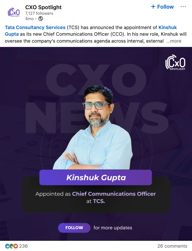 Why this matters: Bringing in a communications leader from Bharti Airtel signals that TCS is strengthening communications as a strategic function, not just a support function. In a market where technology firms must manage brand, stakeholder trust, and corporate narrative across multiple geographies, this kind of appointment suggests a sharper focus on reputation, influence, and enterprise visibility.