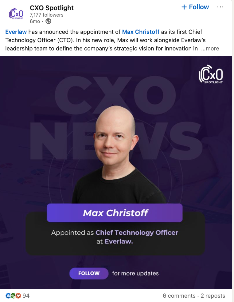 Everlaw has announced the appointment of Max Christoff as its first Chief Technology Officer. In his new role, Christoff will work alongside Everlaw’s leadership team to define the company’s strategic vision for innovation in the rapidly evolving legal technology sector. The appointment comes as Everlaw continues expanding its AI capabilities and scaling its product and engineering organization.