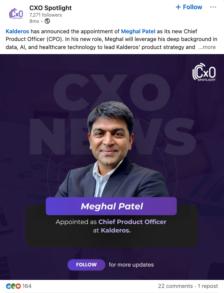 Why this matters: Bringing in a Chief Product Officer with experience across data, AI, and healthcare technology suggests Kalderos is sharpening its product leadership around both innovation and domain relevance. In healthcare technology, product strategy needs to balance technical sophistication with workflow fit, compliance realities, and measurable customer value, making this a strategically important appointment.
