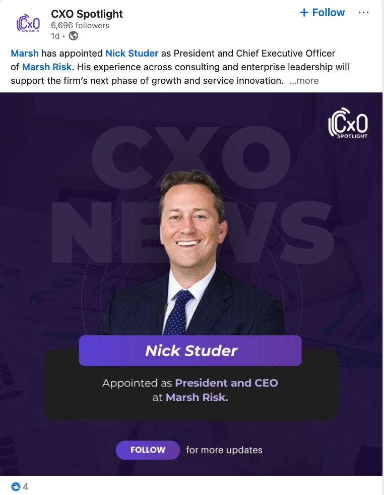 Marsh has appointed Nick Studer as President and Chief Executive Officer of Marsh Risk. He will lead the business as the firm looks to support its next phase of growth and service innovation, drawing on his experience across consulting and enterprise leadership. The appointment takes effect April 1, 2026.