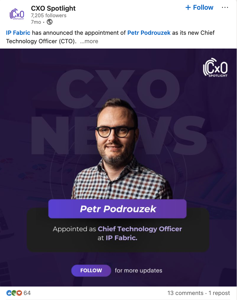 Podrouzek brings more than 15 years of experience leading global technology teams. Before joining IP Fabric, he held senior engineering leadership roles at Emplifi and Barclays, where he worked on scaling engineering organizations and implementing GenAI initiatives. His background also includes earlier leadership experience at IPS AG, spanning enterprise technology, engineering execution, and AI-focused innovation.