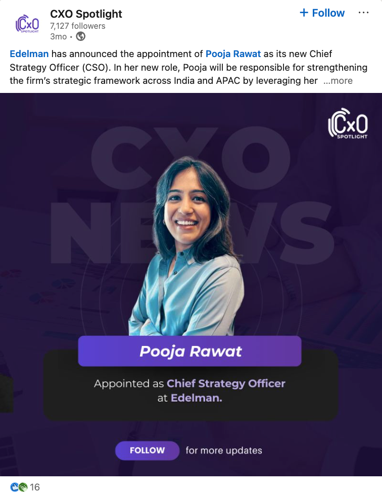 Edelman has announced the appointment of Pooja Rawat as its new Chief Strategy Officer for India and APAC. In her new role, she will be responsible for strengthening the firm’s strategic framework across the region, drawing on her experience in brand strategy, insights, and multi-market planning. The appointment adds senior strategy leadership to Edelman’s India and Asia Pacific business at a time when firms are looking to sharpen regional relevance and integrated advisory capabilities.
