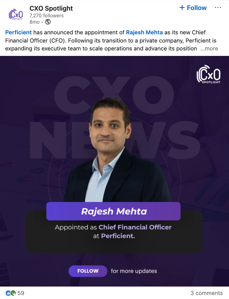 Perficient has announced the appointment of Rajesh Mehta as its new Chief Financial Officer. The appointment comes as the company expands its executive team following its transition to a private company and looks to scale operations while advancing its market position. In this role, Mehta will help lead Perficient’s financial strategy during a period of organizational expansion and transition.