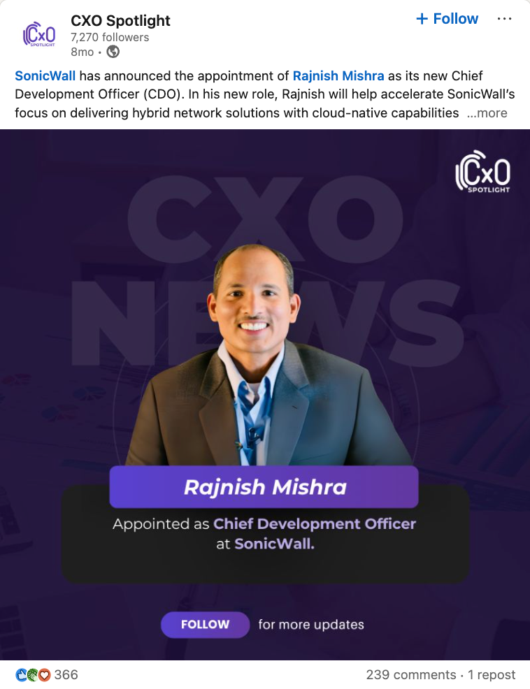 SonicWall has announced the appointment of Rajnish Mishra as its new Chief Development Officer. In this role, he will help accelerate the company’s focus on delivering hybrid network solutions with cloud-native capabilities. The appointment places Mishra in a key leadership position as SonicWall continues to evolve its product and platform direction.