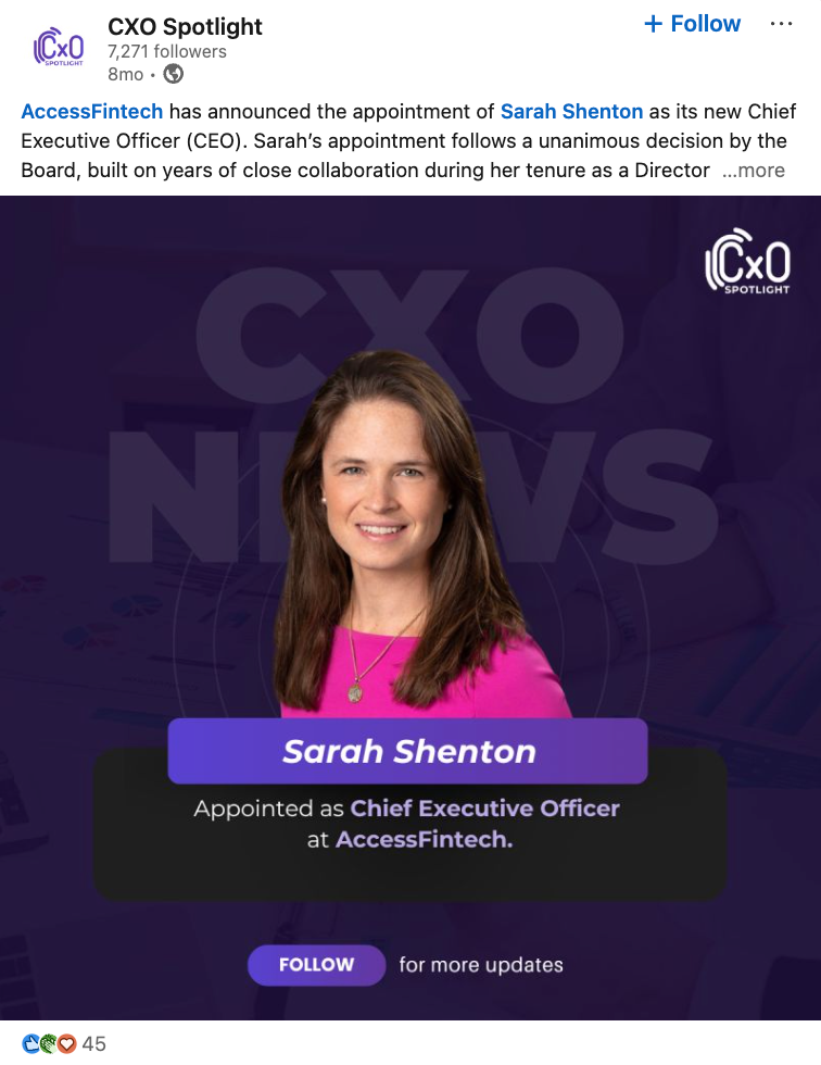 AccessFintech has appointed Sarah Shenton as its new Chief Executive Officer. Her appointment follows a unanimous decision by the Board and builds on years of close collaboration during her tenure as a Director. The move places Shenton in the top leadership role as the company continues to guide its next phase of growth and strategic execution.
