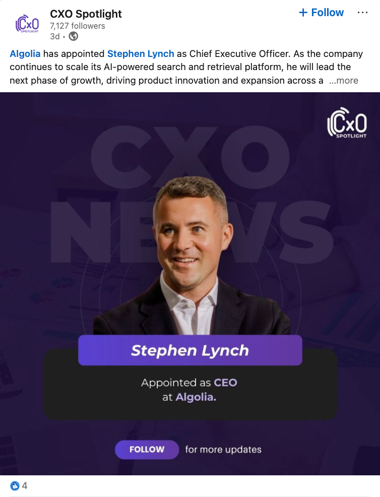 Algolia has appointed Stephen Lynch as Chief Executive Officer. As the company continues to scale its AI-powered search and retrieval platform, Lynch will lead the next phase of growth, with responsibility for product innovation and expansion across a global customer base. He succeeds Bernadette Nixon, who transitioned out of the CEO role at the end of December and remains on Algolia’s board.