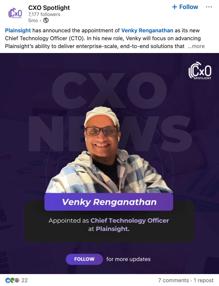 Plainsight has announced the appointment of Venky Renganathan as its new Chief Technology Officer. In his new role, Venky will focus on advancing Plainsight’s ability to deliver enterprise-scale, end-to-end solutions that integrate more seamlessly into customers’ existing ecosystems. The appointment supports the company’s push to strengthen its technology foundation as demand grows for production-ready computer vision AI infrastructure.